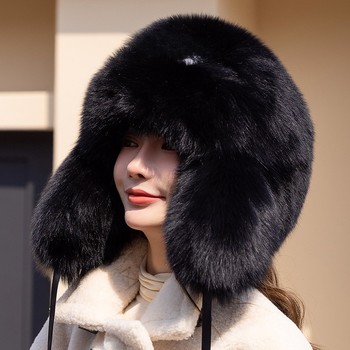 Sombrero esponjoso de calidad superior, sombrero de piel de piloto para mujer con orejeras, sombrero de piel de zorro con resistencia al viento